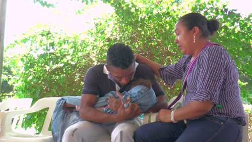 El padre de la menor llegó hasta las instalaciones de Medicina Legal y mientras esperaba, se aferró al cuerpo de su bebé, mientras recibía el consuelo de un familiar.
