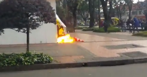 Fiscalía ofrece 30 millones por encapuchado que quemó a policía en Bogotá