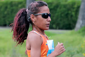 La corredora, dueña del récord nacional de maratón, cruzó la meta después de 1 hora, 18 minutos con 47 segundos, dejando en el camino a la ecuatoriana Carmen Toaquiza (1:19.24) y la boyacense Laura Cusaría (1:19.27), quienes terminaron segunda y tercera, respectivamente.