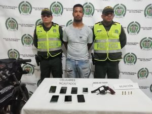 Luego de esto la mujer llamó a la línea 123. Con la información entregada a la línea de emergencia, la Policía inició un plan para dar con el sospechoso, alertando a las patrullas que lo siguieron hasta el barrio Brisas de la Popa. Allí la policía lo interceptó y le encontraron un arma de fuego tipo revólver, cuatro cartuchos para la misma y siete celulares de alta gama.
