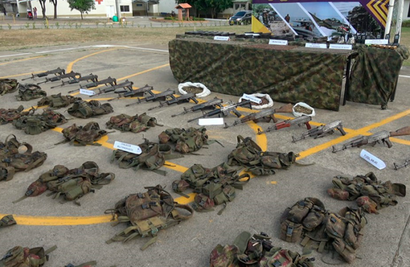 El armamento, los equipos de comunicación y el material de intendencia se encontraba oculto en medio de la vegetación y envuelto en plástico negro, en el lugar las tropas procedieron a extraer el material que posteriormente fue dejado a disposición de la autoridad competente.