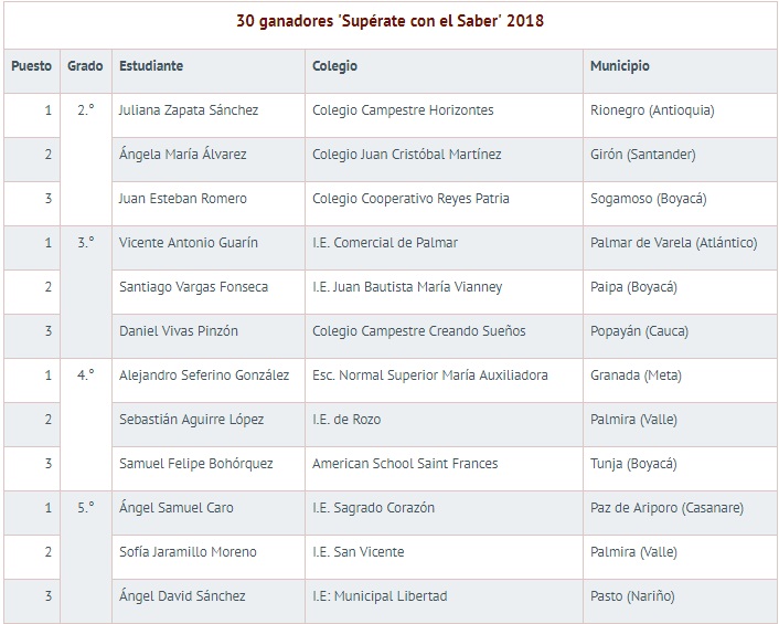 Conozca a los 30 estudiantes que ganaron ‘Supérate con el Saber’ 2018