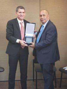 La entrega de este reconocimiento se dio de manos del presidente de la Junta Directiva de Asocajas, Ernesto Herrera al exdirector de Comfacesar, Ernesto Orozco Durán.