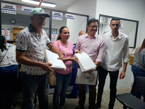 En Valledupar lo hizo en el Palacio de Justicia. Allí presentó 59 demandas de predios por reclamar ubicados en Becerril, El Copey y Chiriguaná, Cesar; y en El Salao, corregimiento de Riohacha, La Guajira.