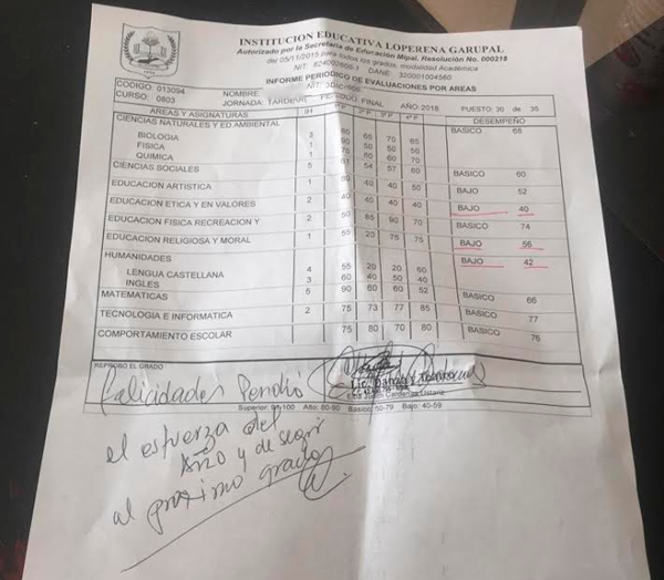 Con sarcasmo profesora felicita a estudiante porque perdió el año en Valledupar