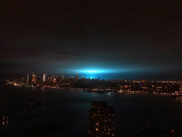 Una misteriosa luz azul iluminó el cielo de Nueva York el jueves por la noche, desatando una oleada de especulaciones y teorías en redes sociales.