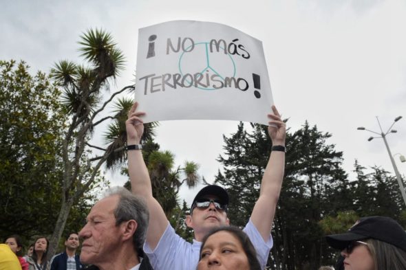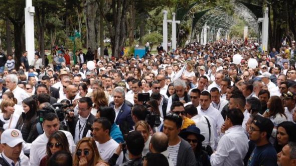 En forma contundente el pueblo colombiano le dijo “No al terrorismo”, “no más violencia”, en desarrollo de las marchas realizadas este domingo en Bogotá y las demás capitales de departamentos del territorio colombiano, además para rendir un homenaje póstumo a los 20 jovenes asesinados con el carro bomba detonado en la Escuela de Cadetes de la Policia Nacional General Santander.