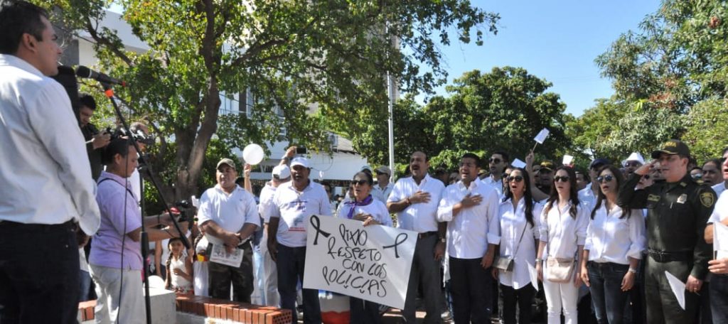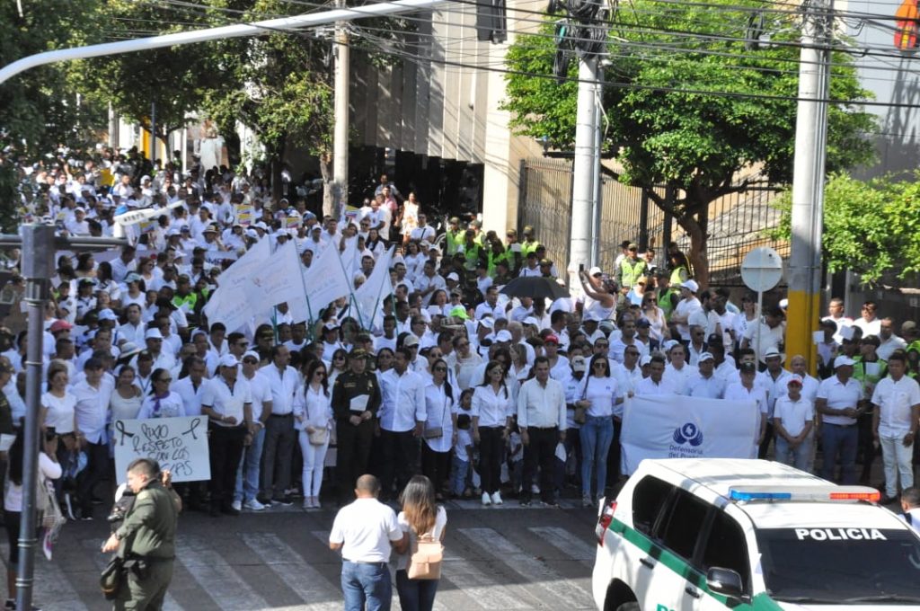 Vestidos de blancos, con banderas y arengas se hizo el recorrido en el que participaron autoridades civiles, militares y la sociedad civil, ¡abajo el terrorismo¡ entre las voces que se unieron desde la capital del Cesar.