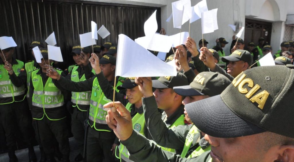 En Valledupar el acto finalizó con el himno de la Policía y el abrazo de la ciudadanía a los uniformados.