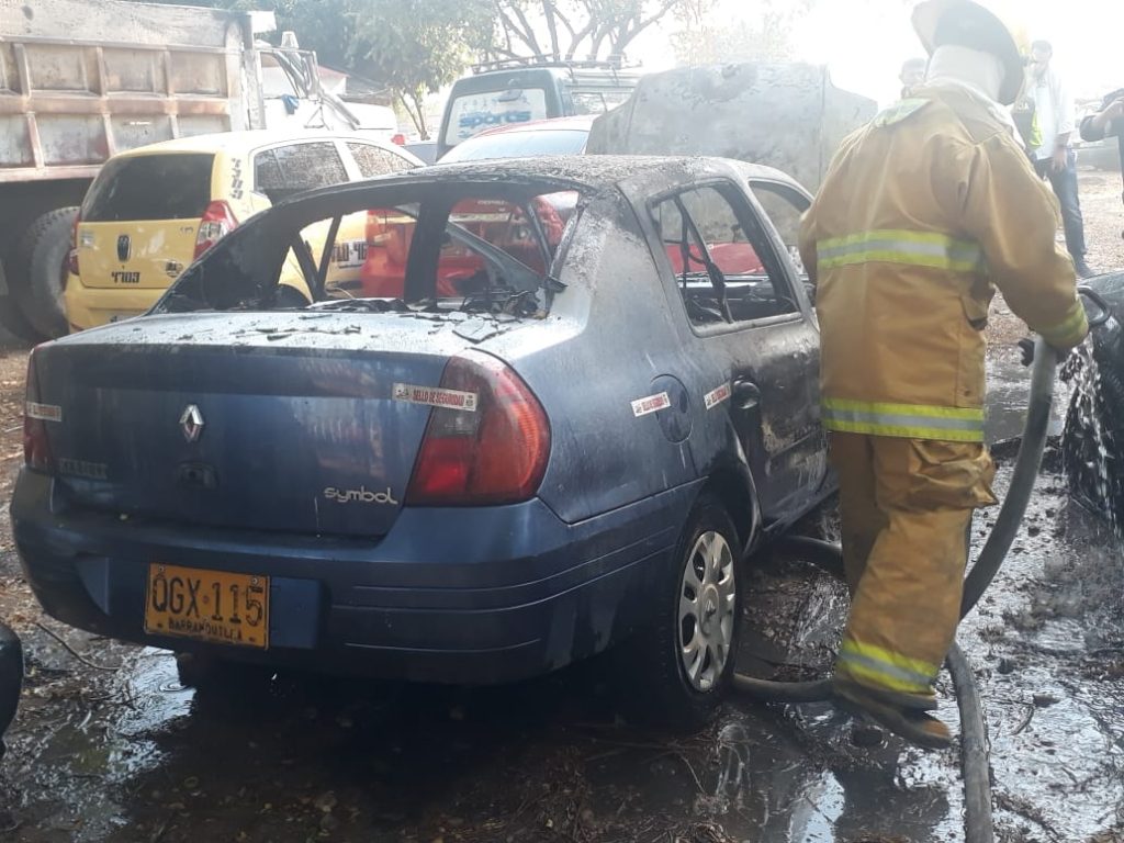 El hecho se registró a las 4:16 de la tarde de este lunes, cuando el conductor del vehículo Renauld Simbol de placas OGX -115, se disponía a sacar el automotor tras haber pagado la sanción después de dos meses de estar inmovilizado, lo que generó el incendio que consumió el carro y de paso alcanzó a otros automotores.
