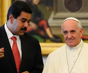 “Esperamos una respuesta positiva”, añadió Maduro, que no es la primera vez que solicita la mediación del Sumo Pontífice en la crisis política que vive su país.