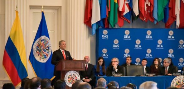 El presidente colombiano Iván Duque Márquez advirtió ante el Consejo Permanente de la Organización de Estados Americanos, OEA que el cerco diplomático que se ha logrado contra la dictadura de Nicolás Maduro en Venezuela y además notificó: “La noche de la dictadura en Venezuela no será eterna y ya le llegó su final”.