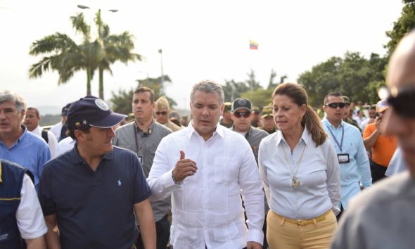 “Lo importante aquí es el cerco diplomático y no dejarnos llevar a discursos belicistas”, respondió Duque cuando se le preguntó si contemplaba una opción militar para poner fin a la crisis en Venezuela.