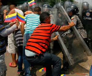 Mientras los camiones avanzaban, en la cercana ciudad limítrofe venezolana de San Antonio fuerzas de seguridad fieles a Maduro lanzaron gases lacrimógenos y balas de goma a una marcha de diputados y simpatizantes que se dirigían al puente fronterizo Simón Bolívar para recoger la ayuda.