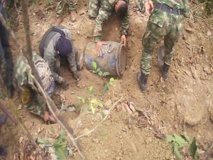 La operación se adelantó gracias a la inteligencia de la Armada Nacional, quienes de forma conjunta con sus tropas de Infantería de Marina, el Ejército Nacional y la Policía Nacional, llegan hasta la vereda El Recreo donde se encontraba este material escondido en un depósito ilegal.