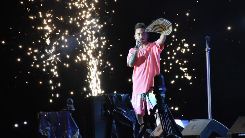 “Buenas noches Valledupar, buenas noches, fueron las primeras palabras que dirigió a los espectadores que en su mayoría eran jóvenes. El boricua apareció vistiendo una pinta bastante playera, un suéter rosado, pantaloneta amarilla, azul y rosada, tenis blancos y lentes oscruros, mostrando así su lado más descomplicado.