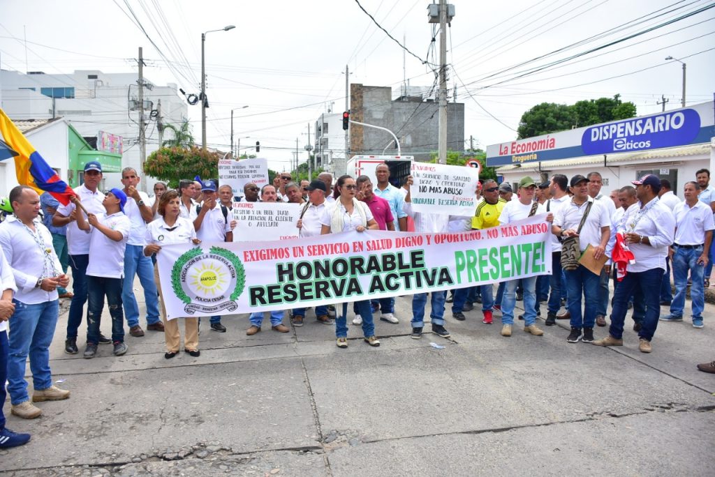 A las calles de Valledupar salieron algunos pensionados de la Policía a protestar por el mal servicio que reciben en salud por parte de la Dirección de Sanidad de la institución.