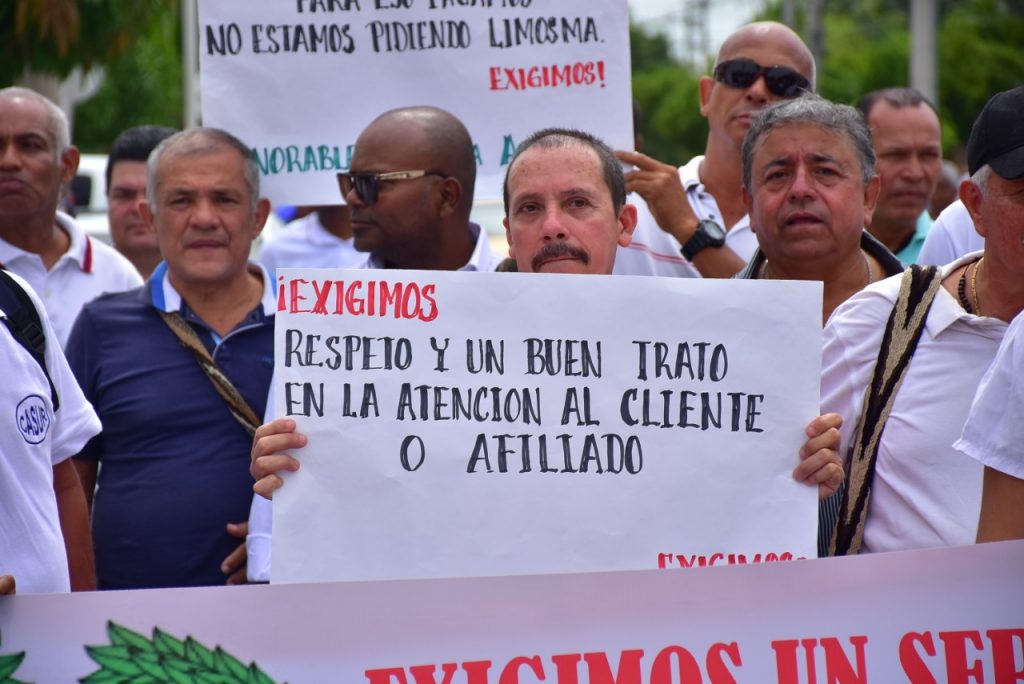 Algunos de los pensionados se encadenaron para llamar más la atención y buscar solución al problema del servicio de salud. “Nosotros le prestamos un servicio a la patria, no fuimos bandoleros, ni salimos del monte, siempre estuvimos y estamos con la institucionalidad, pero estamos protestando por la mala calidad de la salud que nos prestan”, insistió este hombre más de 23 años en la institución.