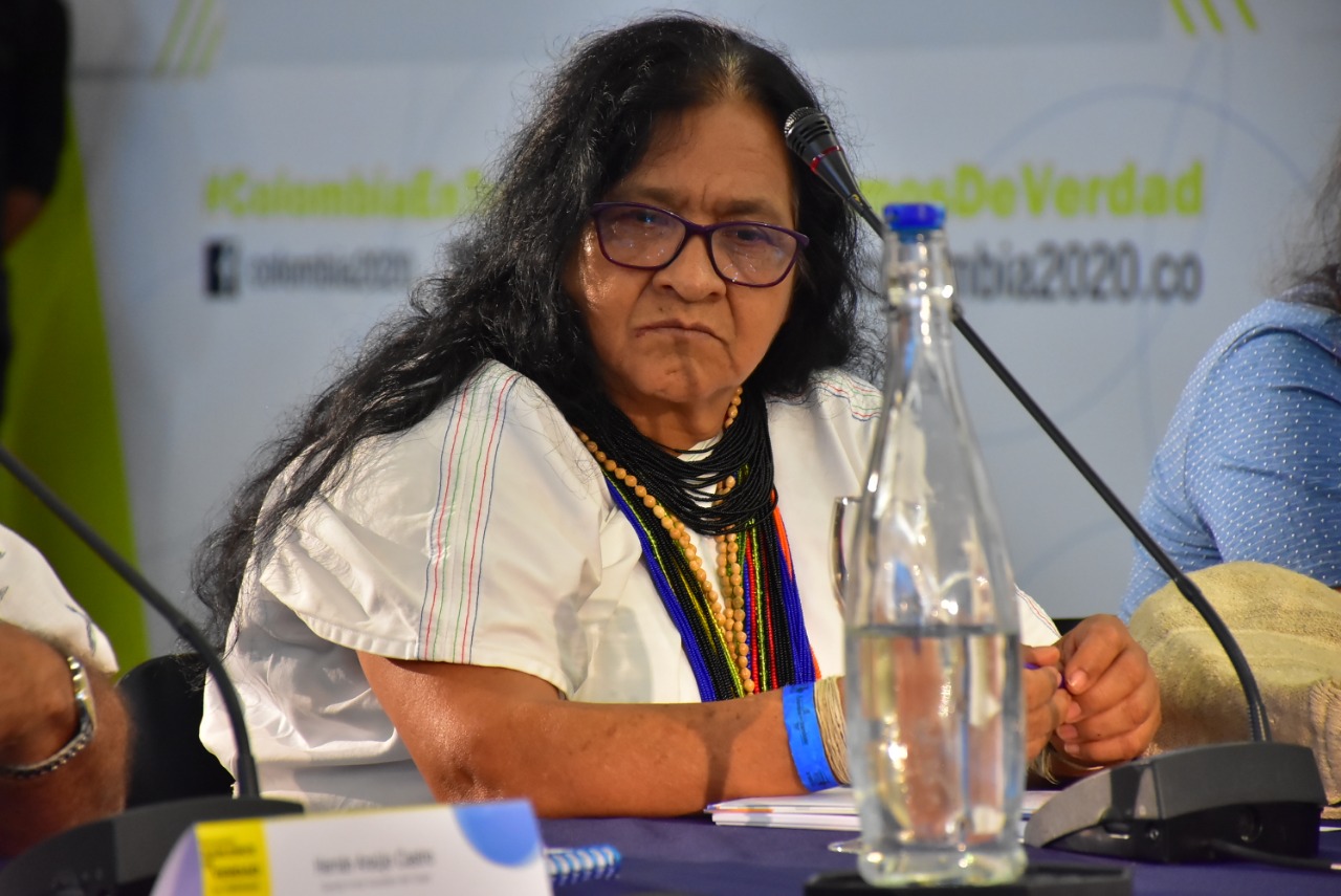 La confesión fue escuchada de manera atenta por Leonor Zalabata, lideresa del pueblo Arhuaco, quien en su intervención sobre los difícil de hablar del conflicto armado dijo que “es difícil hablar de la verdad del conflicto armado porque es estructural, es económico, político y cultural y “es grave en este momento porque sigue siendo armado».