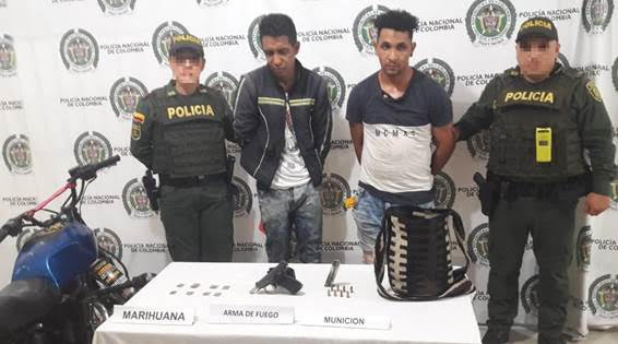 En este procedimiento son capturados Jhon Fredy Ávila, 19 años de edad y Carlos Smith Villamil, 23 años de edad, los cuales, junto con el arma de fuego y la motocicleta, fueron dejados a disposición de la Fiscalía en turno URI de Valledupar, por el delito de hurto y porte ilegal de armas, donde en audiencia un juez resolvió dictarles medida de aseguramiento en centro carcelario, al considerarlos un peligro para la sociedad.