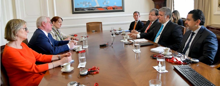 Tras un encuentro con el Presidente Iván Duque, el Enviado Especial de la Unión Europea (UE) para la Paz de Colombia, Eamon Gilmore, resaltó este lunes el compromiso del Jefe de Estado con la implementación del Acuerdo final, en particular con el impulso de los Programas de Desarrollo con Enfoque Territorial (PDET) y el apoyo al proceso de reincorporación de los excombatientes.