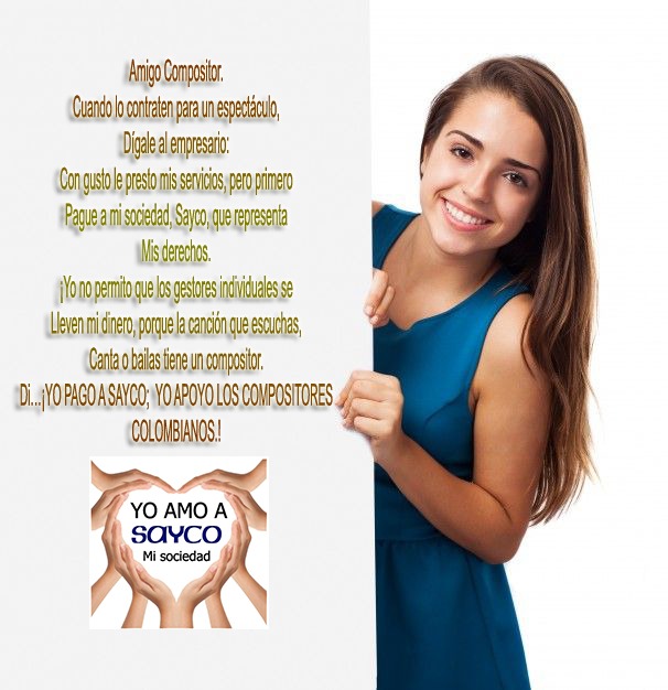 En esta gran tarea, Sayco, previene a todos los usuarios de la música que comunican obras musicales, a que cumplan con la normatividad vigente en materia de derechos de autor, verificando quien representa los repertorios a ejecutarse, con el fin de que se eviten problemas jurídicos futuros al caer en los engaños de los gestores individuales ilegales.