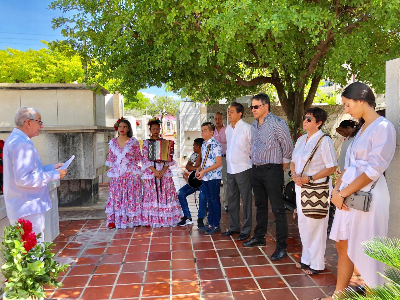 Con una ofrenda floral, amigos y familiares de ‘La Cacica’, Consuelo Araujo Noguera, conmemoraron su natalicio en el Cementerio Central donde yacen sus restos, en la mañana de este jueves.