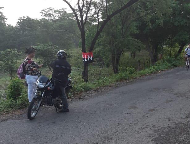 Una bandera de la guerrilla del Eln y un mensaje en la carretera alusivos al grupo guerrillero, alertaron a los habitantes de los corregimiento del noroccidente del municipio de Valledupar.