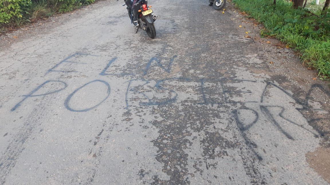 “ELN por siempre y para siempre” es uno de los mensajes que aparece en la vía entre La Mesa y Azúcar Buena, que inquieta a sus habitantes por la posible aparición de este grupo armado en la zona.