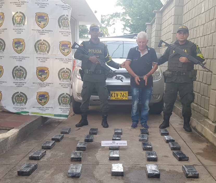A la cárcel fue enviado un hombre a quien las autoridades le hallaron 25 kilos de cocaína que transportaba escondidos en varias caletas en una camioneta en la vía San Roque-La Paz, en el departamento del Cesar.