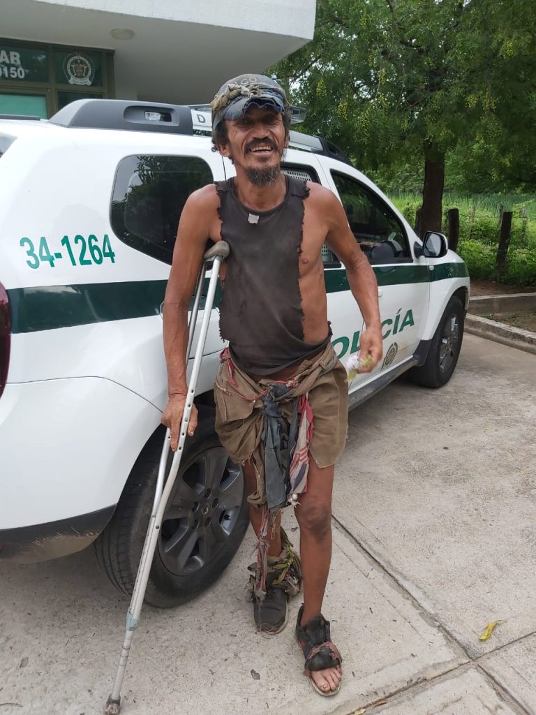 La teniente Jenny le corresponde el saludo a “Cocacolo” y pesar de la dificultad que tiene para hablar, comparte con ella información sobre su vida, “le dice que su nombre es José Ovidio, que es natural de Barranquilla, que no tiene familia y que siente mucho cariño por la Policía Nacional, a quienes los identifica como sus amigos ya que lo han ayudado varias oportunidades”.