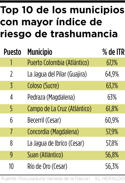 Los municipios de Becerri, La Jagua de Ibirico y Rio de Oro aparecen en el top de los 10 primeros de la Costa Atlantica, con mayor riesgo de trashumancia electoral, un delito penalizado por cárcel de 4 a 9 años y una multa de 50 a 200 salarios mínimos legales mensuales vigentes.