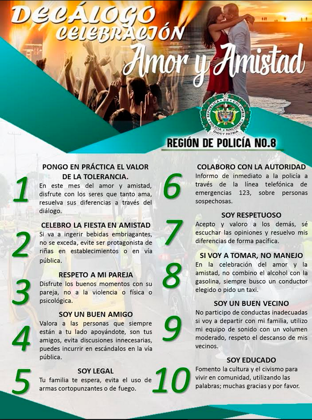 Decálogo de convivencia para evitar que celebración de amor y amistad termine en tragedia
