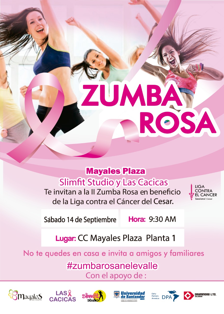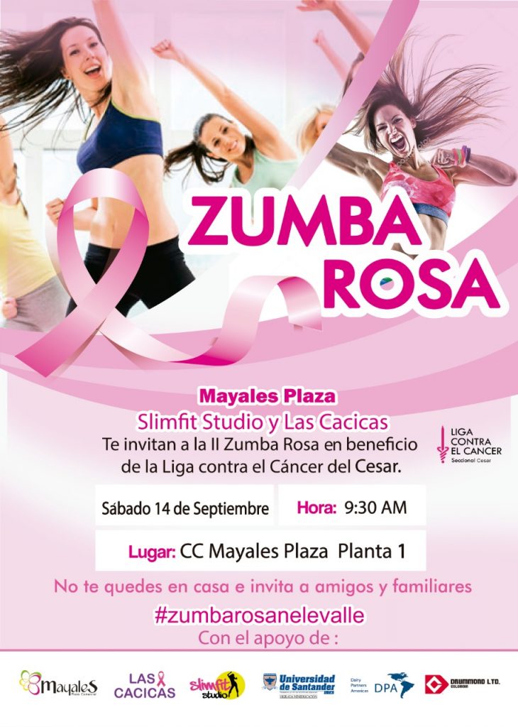 Por tercera vez la Zumba Rosa se llevará a cabo en Valledupar, evento pensado y diseñado para compartir con las mujeres sobrevivientes de cáncer y con la comunidad vallenata con el fin de fomentar hábitos saludables, y apoyar la labor que realiza la Liga Contra el Cáncer en el departamento del Cesar.