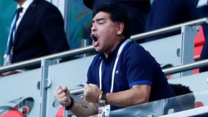 “No es justo, no es justo”, dijo Maradona a los hinchas ubicados en la tribuna a su espalda, detrás del banco de suplentes local.