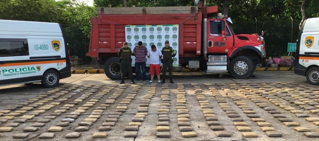 Mediante labores de registros, la Policía incautó 200 kilos de marihuana transportados en una volqueta con arena en la vía que conduce de San Roque a Bosconia, en Cesar.