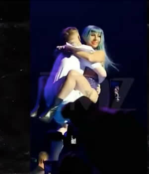 Tremenda caída de Lady Gaga tras abalanzarse sobre un fan