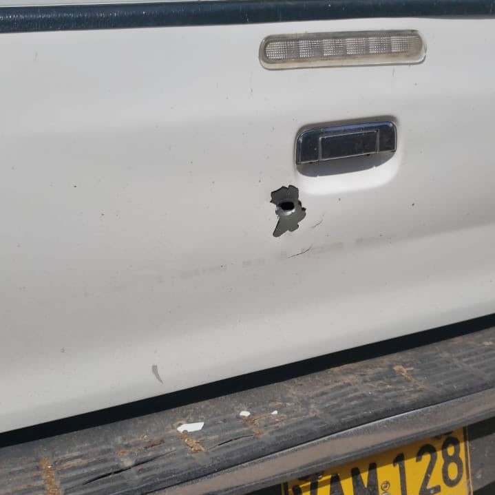 Los proyectiles se alojan , dos en la parte trasera e la camioneta y uno en la parte delantera izquierda sin herir a ninguno de los ocupantes, quienes logran llegar a la estación de Policía del municipio de Codazzi donde reciben la atención por parte de las autoridades.