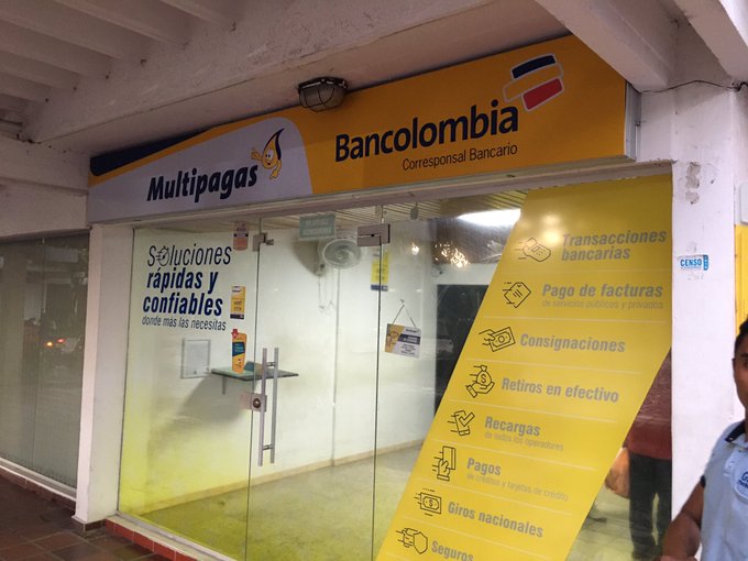 Esta oficina de corresponsal bancario de BanColombia está ubicada en el corazón de la ciudad, sin embargo, los delincuentes tuvieron el tiempo suficiente para llevarse todo el dinero.