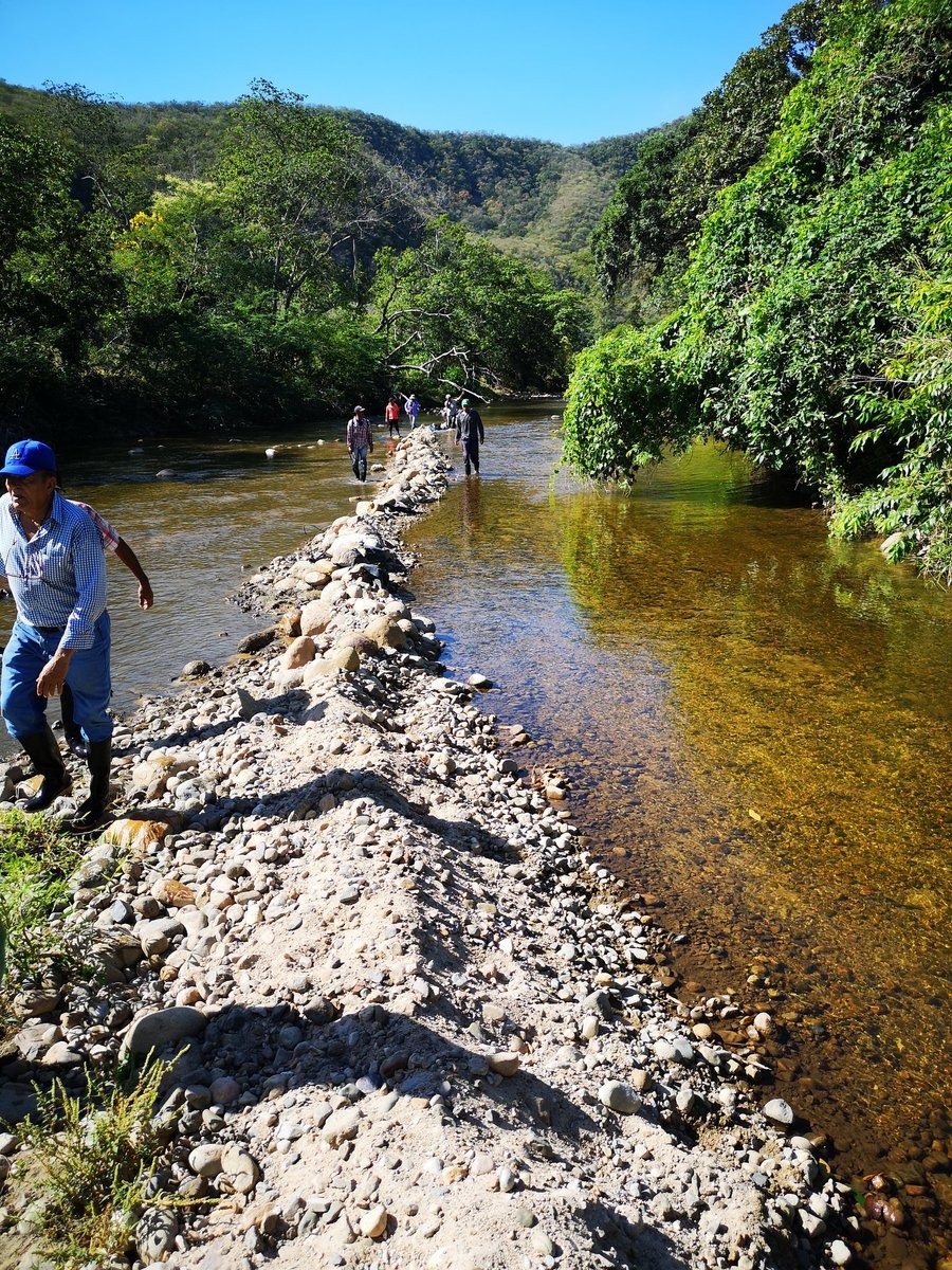 Por WhatsAPP también circula un vídeo en el que muestran como con piedras han hecho el desvío del afluente.