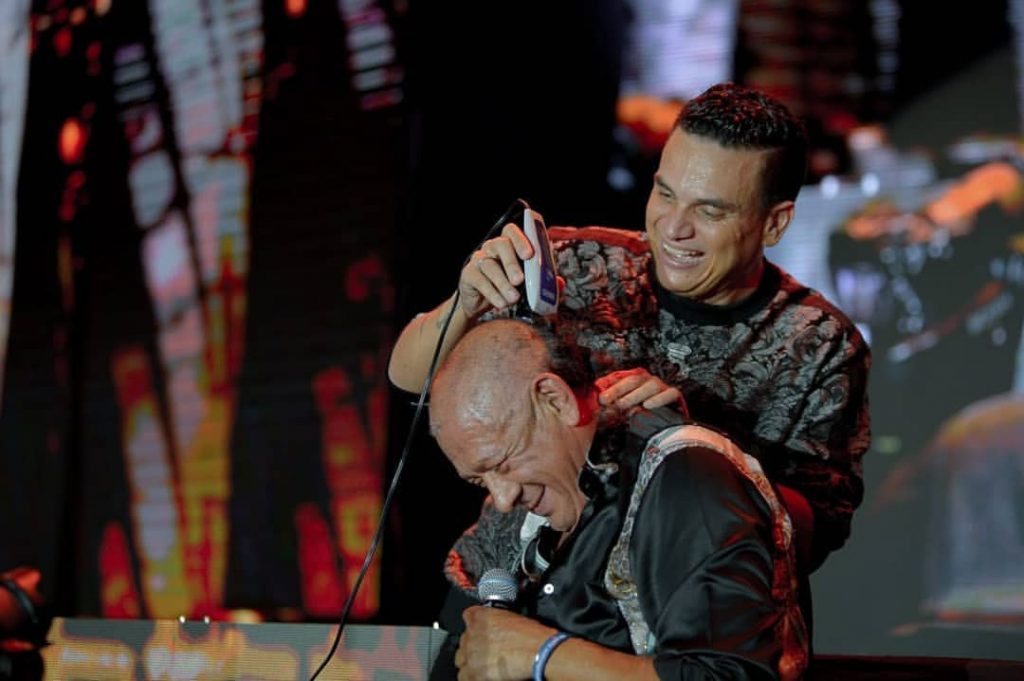 Y apareció entonces lo que generó el hecho curioso de la noche. Emiliano Zuleta hizo sonar su acordeón y Silvestre cantó ‘Se equivocó’, ‘Orgullosa’, ‘Mañanitas de invierno’ y ‘039’. En medio del canto, el urumitero dijo que Emilianito cumpliría una promesa a Dios dejándose cortar el cabello por él en plena tarima, dado que un inconveniente de salud lo había llevado a Brasil para practicarse exámenes con el fin de evaluar una operación a corazón abierto. “Estoy sano y a Dios hay que cumplir, no se le puede fallar, así que venga Silvestre y córteme este cabello que yo soy hombre de palabra”, declaró Emiliano.