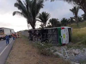 El hecho se registró a las 6:20 de la mañana de este domingo y las primeras informaciones indican que al parecer una tractomula invadió el carril del bus, el conductor trató de salirse de la vía, perdió el control del vehículo y se volcó.