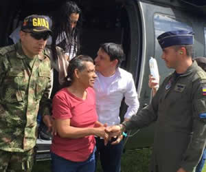 Gracias al trabajo conjunto entre la Fuerza Aérea y el Ejército y coordinado con la Policía Nacional y la participación también de la Fiscalía General de la Nación, la mujer ya se encuentra en compañía de sus familiares y amigos.