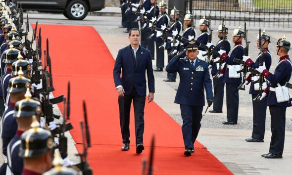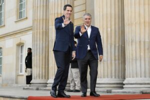 El Presidente Ivan Duque recibió este domingo al Presidente Interino de Venezuela, Juan Guaido, con alfombra roja y con todos los honores militares de jefe de Estado, para reafirmar su apoyo al mandatario y su rechazo al «usurpador» Nicolás Maduro.
