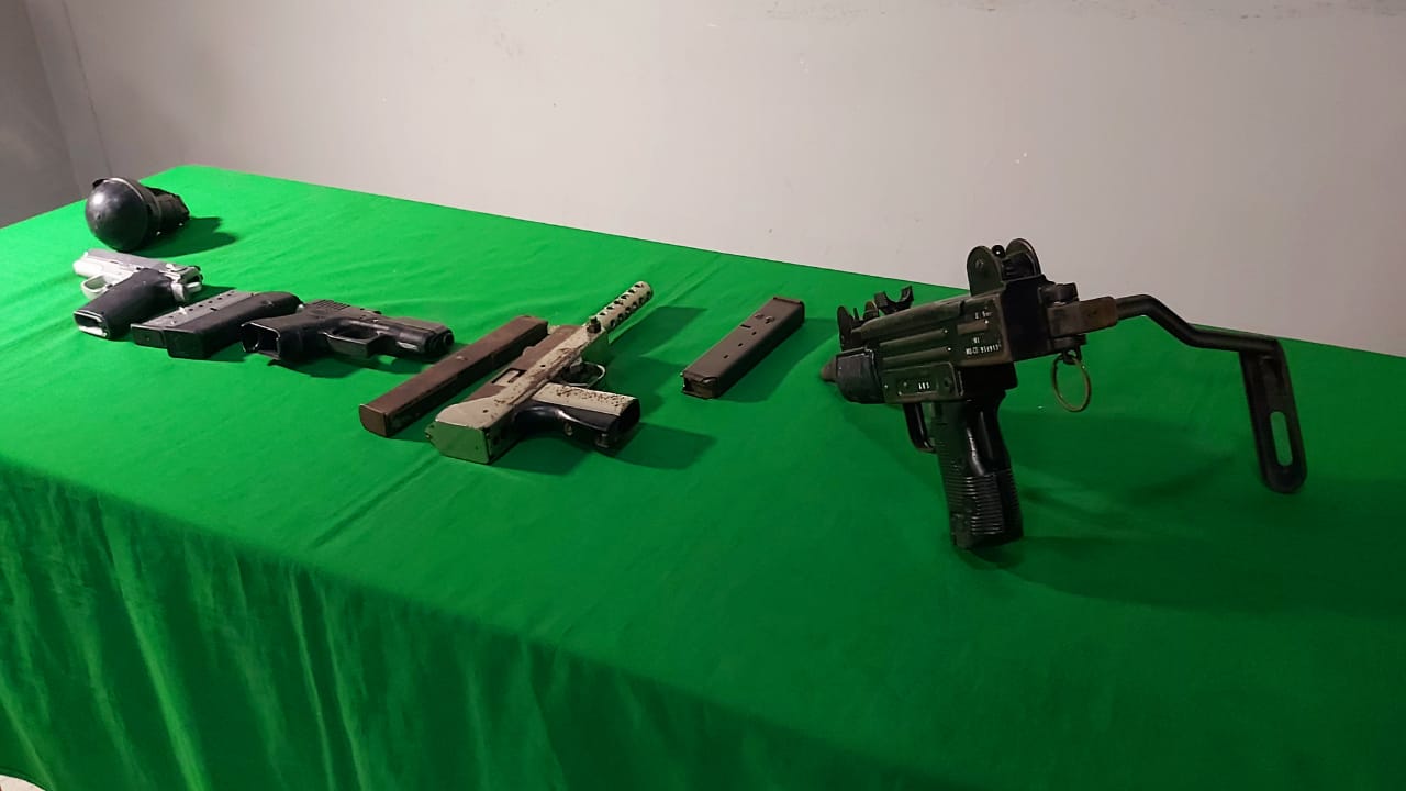 En la vivienda donde estaban alojados fue encontrada una miniuzi, una granada de aturdimiento y cuatro cartuchos. El grupo antes residía en Puerto Colombia.