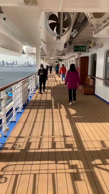 Entretanto, el jueves los pasajeros recibieron una buena noticia: se les permitiría permanecer en la cubierta abierta durante 90 minutos bajo la supervisión de oficiales de cuarentena. Esto sí, deben estar separados por un metro y no mantener contacto físico ni formar grupos.