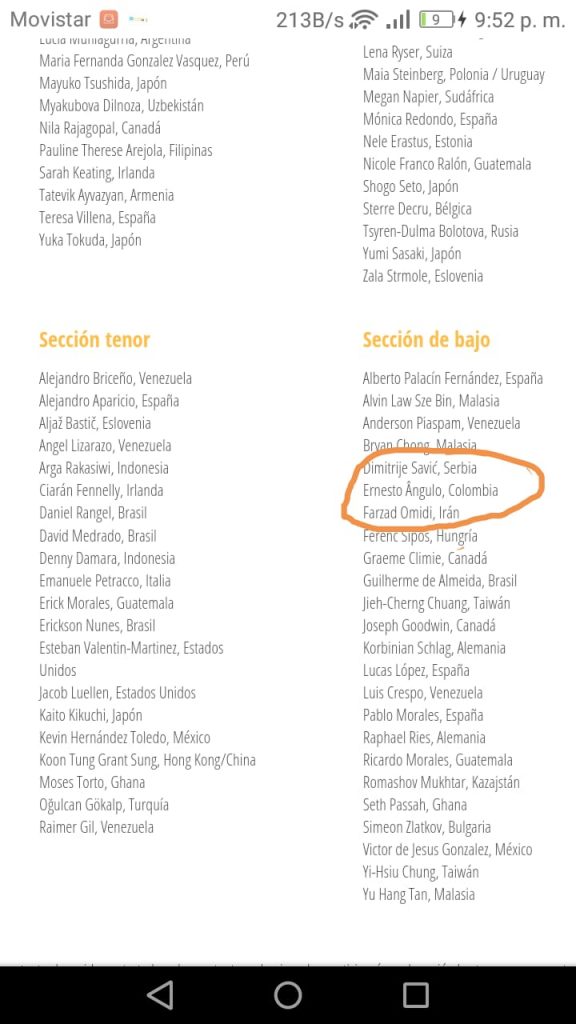 El joven cantante lírico, Ernesto Fabio Angulo Quintero, fue seleccionado para participar en el Coro Mundial de la Juventud (World Youth Choir) durante la temporada de verano de 2020, convirtiéndose en el único colombiano que hará parte de esta agrupación vocal de alto nivel que cada año reúne intérpretes de todo el planeta.