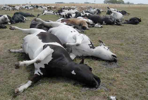 El documento expresa que los departamentos en donde más han muerto bovinos son Arauca con 3565 animales, Bolívar (4277), Casanare (3295), Cesar (2147), La Guajira (2732), Magdalena (8369), Sucre (5693) y Tolima (2496).