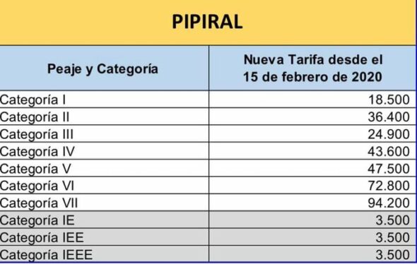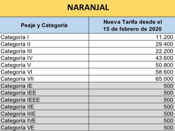 Así quedan las tarifas en el peaje Naranjal: