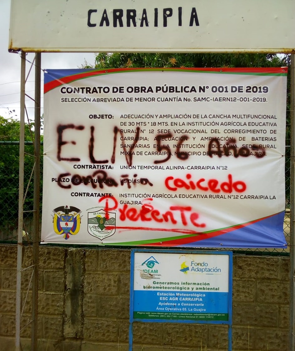 Los habitantes del corregimiento de Carraipía, en el municipio de Maicao, la Guajira, informaron que guerrilleros del ELN, quienes llevan a cabo un paro armado de 72 horas, llegaron durante la madrugada de este domingo a la Institución Educativa La Vocacional, donde estuvieron toda la madrugada y dejaron letreros en las paredes.